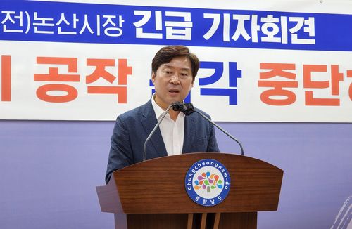 기자회견하는 황명선 전 논산시장 |