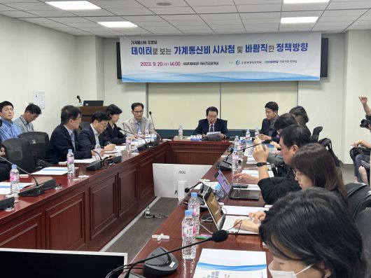 20일 국회의원회관 제4간담회의실에서 '데이터로 보는 가계통신비 시사점 및 바람직한 정책 방향' 토론회가 진행되고 있다. /김민국 기자 |