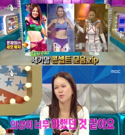 백지영이 '라디오스타'에 출연해 과거 자신의 무대 의상을 떠올리며 "너무 야했다"고 말했다. /MBC 캡처 |