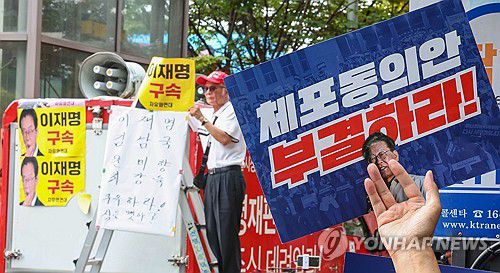 (서울=연합뉴스) 서대연 기자 = 더불어민주당 이재명 대표 체포동의안 표결을 앞둔 21일 오후 서울 영등포구 국회 앞에서 이 대표 지지 집회와 반대 집회가 함께 열리고 있다. 2023.9.21 dwise@yna.co.kr ▶제보는 카카오톡 okjebo▶연합뉴스 앱 지금 바로 다운받기~▶네이버 연합뉴스 채널 구독하기 <저작권자(c)연합뉴스. 무단전재-재배포금지.>
