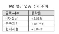 철강 업종 주가 전반에 훈풍이 불고 있다. 이달 들어 현대제철(8.84%), 동국제강(18.95%) 등이 강세+2.를 보이면서 철강주 20개를 모아놓은 KRX 철강지수도 이달 들어 2.08% 올랐다. 같은 기간 코스피 지수는 1.62% 내렸다.