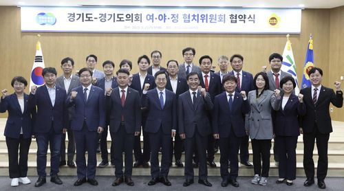 (수원=연합뉴스) 최찬흥 기자 = 경기도와 도의회 협치기구인 '여야정협의체'가 민선 8기 2년 차를 맞아 '여야정협치위원회'로 새 출범했다.