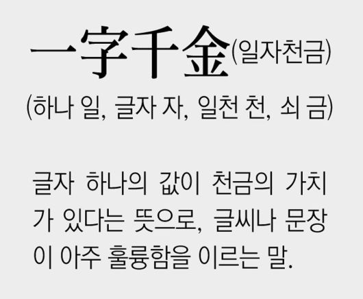 ● 생각거리: 여불위가 진시황의 실제 아버지라는 기록도 있습니다. 진(秦)나라의 태자 정(政)이 즉위하여 진시황(秦始皇)이 되자 여불위(呂不韋)는 절대 권력을 누리게 되었지요. 일자천금은 여불위가 자신의 업적을 과시하기 위해서 한 말이지만 지금은 “글씨나 문장이 아주 훌륭함”을 나타내는 말로 쓰이고 있습니다.