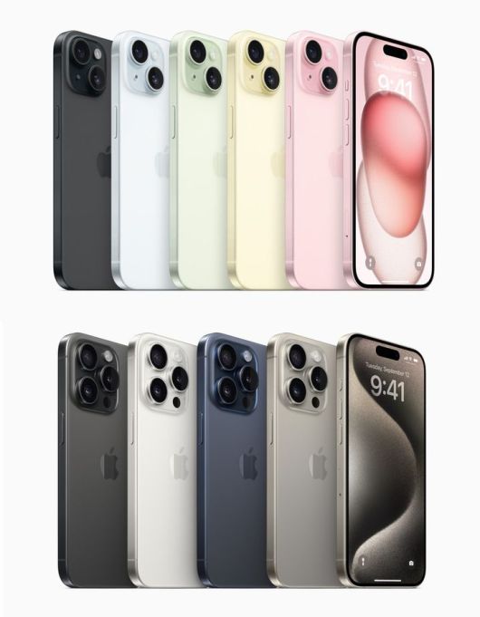 아이폰15 일반 라인업(위쪽)과 프로 라인업 색상. (사진=애플 제공) *재판매 및 DB 금지 |