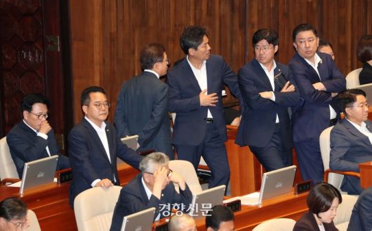 박광온 더불어민주당 원내대표를 비롯한 소속의원들이 21일 국회 본회의에서 이재명 대표의 체포동의안이 가결되자 심각한 표정을 짓고 있다. 박민규 선임기자 |