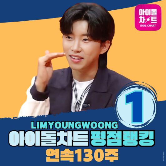 가수 임영웅이 아이돌 차트 평점 랭킹에서 130주 연속 1위를 차지하며 독주하고 있다.
