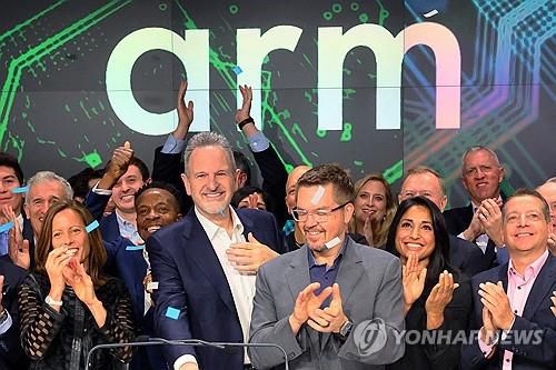 지난 14일 나스닥 입성에 환호하는 Arm 관계자들 [게티이미지/AFP 연합뉴스 자료사진. 재판매 및 DB 금지] |