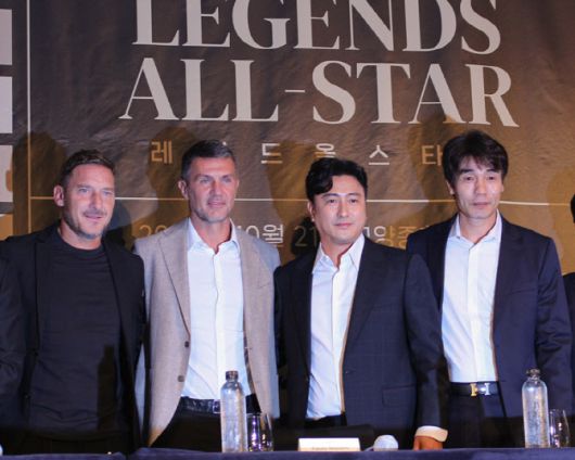 말디니와 토티는 22일 오전 서울 영등포구 페어몬트 앰배서더 서울에서 열린 ‘레전드 올스타전’ 기자회견에 참석해 한국 취재진의 질문에 답했다. 기자회견 이후에는 일반 팬들과도 만나 즐거운 시간을 보냈다.