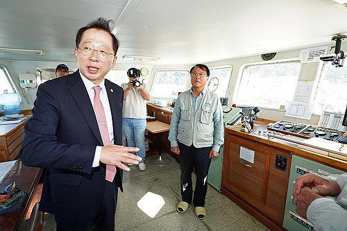 (서울=연합뉴스) 조승환 해양수산부 장관이 추석 명절을 앞두고 여객선터미널과 여객선의 안전관리 현황을 점검하기 위해 22일 대천 연안여객터미널을 방문, 시설을 점검하고 있다. 2023.9.22 [해양수산부 제공, 재판매 및 DB 금지]