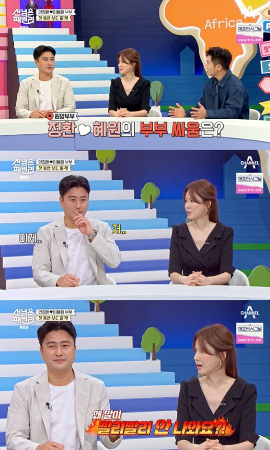 유세윤은 "두 분이 싸우는 경우는 없지 않냐"고 물었다. 안정환이 머뭇거리자 이혜원은 "왜 말이 빨리빨리 안 나오냐"고 불만을 토로했다.