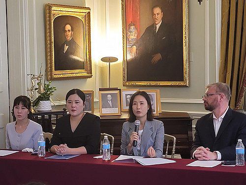 (워싱턴=연합뉴스) 조준형 특파원 = 탈북여성단체인 뉴코리아여성연합의 이소연 대표(오른쪽 두 번째)가 22일(현지시간) 워싱턴 D.C.에서 미국 비정부 기구인 북한인권위원회(HRNK) 주최로 열린 증언 행사에서 북한 인권 문제에 대한 관심을 호소하고 있다.