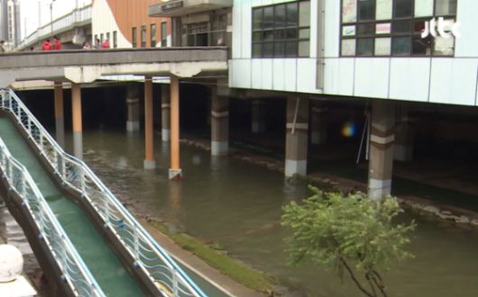 50대 여성이 실종된 온천천. 〈사진=JTBC 방송화면 캡처〉 |