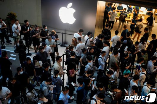 (서울=뉴스1) 박형기 기자 = 미중 기술전쟁이 고조되면서 중국 정부가 아이폰15 출시를 앞두고 공무원, 공공기관 임직원 등에게 아이폰 사용을 금지했다는 외신 보도에도 막상 아이폰이 정식 판매되자 중국매장이 발 디딜 틈이 없을 정도로 붐비는 등 중국에서 아이폰 특수가 발생하고 있다.