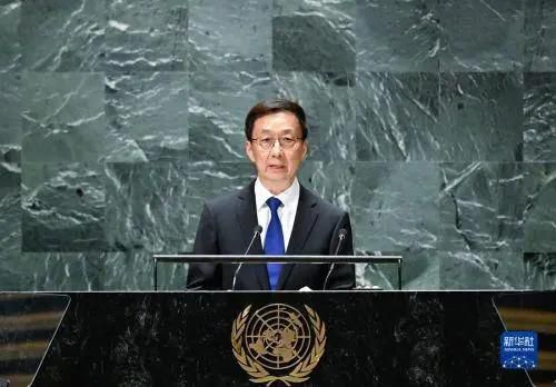 유엔 총회에서 연설하는 한정 중국 국가부주석 |
