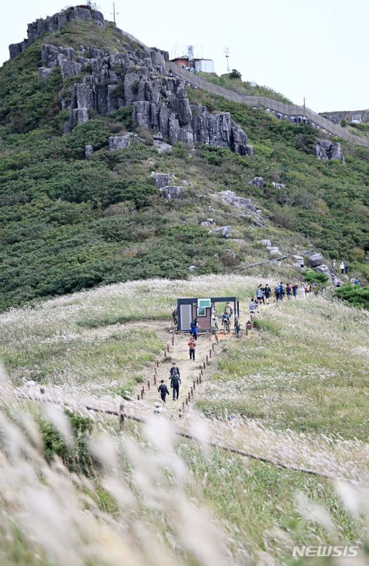 김경자(63)씨는 "봉우리가 철책에 가로 막혀 전체를 볼 수 없어 아쉬웠다"며 "차질 없이 정상부 복원이 되길 바란다"고 밝혔다.