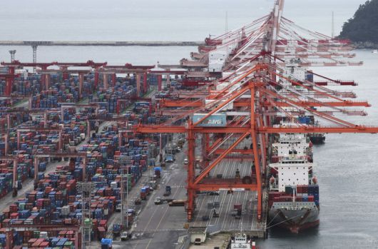 21일 부산항 신선대부두에서 컨테이너 하역작업이 진행되고 있다. 연합뉴스. |