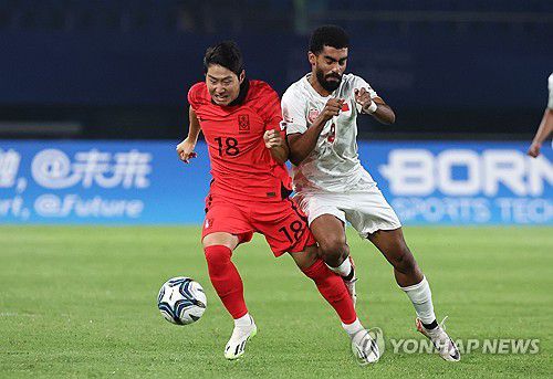 직후 바레인이 역습 기회를 가져갔다. 라이트백 최준을 돌파한 후 박스 안까지 진입해 슈팅을 때렸다. 수비가 끝까지 달라붙어 슛을 막아내 유효 슈팅 기회를 내주진 않았다.