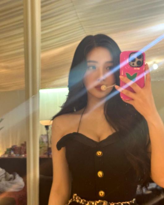 해당 사진에는 어깨와 가슴 라인이 드러난 검은색 의상으로 매력을 뽐내는 조이의 모습이 담겼다.