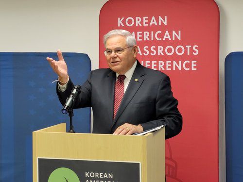 발언하는 메넨데스 미 상원 외교위원장 |