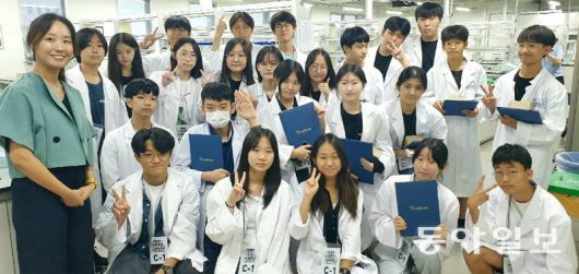 연세대 약대 민도식 교수는 암세포가 어느 정도 독성을 가졌는지를 확인하는 실험을 학생들과 열정적으로 진행했다. 이 실험에 참여한 김민지 양(18·전주대 부설 국제영재아카데미 12학년)은 “학교에서 배운 내용을 더 심층적으로 배우고 실험까지 할 수 있어 매우 유익한 시간이었다”고 했다.