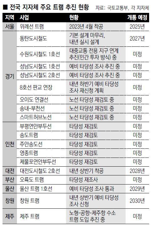 지자체들은 국내 교통 환경에 맞춰 트램을 도입하기 위해 고심 중이다. 현재 트램 도입을 검토하는 지자체들은 전기선이 없는 이른바 무가선 방식 도입을 주로 검토하는 것으로 알려져 있다. 도시 미관이나 주변 환경을 고려해 전차선이 있는 유가선 방식보다는 전차선이 없는 무가선 방식이 트램 신규 도입 시 더 유리하다는 평가다.