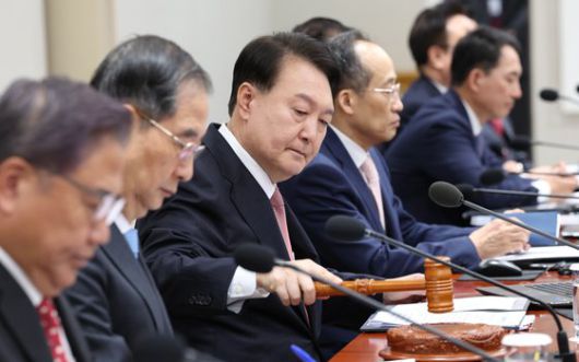 윤석열 대통령이 25일 서울 용산 대통령실 청사에서 열린 국무회의에서 개회를 선언하고 있다. 연합뉴스 |