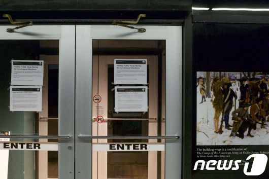2018년 1월20일 정부 셧다운으로 인해 밸리포지국립역사공원이 문을 닫았다는 표지를 붙여놓았다. 2018.01.20. ⓒ AFP=뉴스1 |