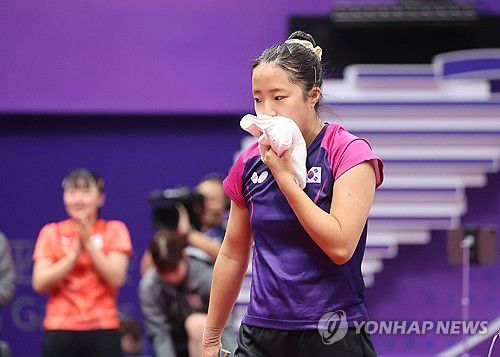 (항저우=연합뉴스) 안홍석 기자 = 한국 여자 탁구의 '열아홉 살 에이스' 신유빈(대한항공)은 첫 아시안게임 메달 색깔에 만족하지 못하고 눈물을 글썽였다.