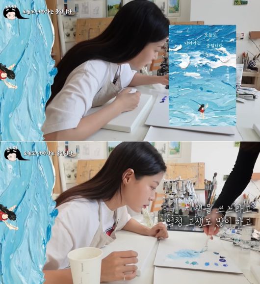 조민은 지난 24일 '책 표지 그리기(실패작 포함)' 영상에서 지난 19일 발간된 자신의 에세이 '오늘도 나아가는 중입니다'를 준비하는 모습을 공개했다.