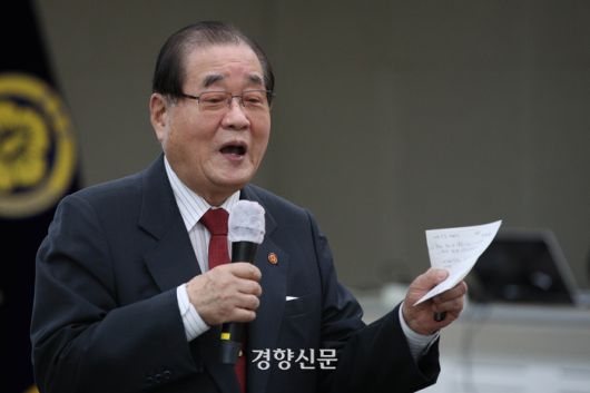 이종찬 광복회장이 25일 서울 여의도 광복회관에서 열린 기자간담회에서 1948년 건국절 논란의 부당성에 대해 입장을 밝히고 있다. 이 회장은 1948년 건국 주장과 관련, “이승만 대통령의 대한민국 정부수립 방침과 어긋난다”라며 “해당 건국론은 일제의 한국침탈이 합법적이었음을 인정하게 된다”라고 설명했다. 성동훈 기자 |