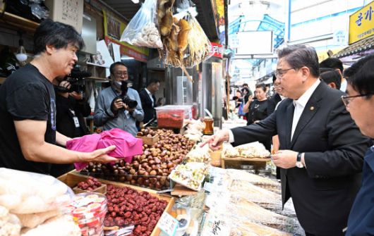 박 장관은 박강수 마포구청장, 반석병 망원동월드컵시장조합장과 함께 시장을 둘러보며 명절음식 준비를 위해 장을 보러 나온 시민들과 만나 덕담을 나누고 전통시장 이용을 장려했다.