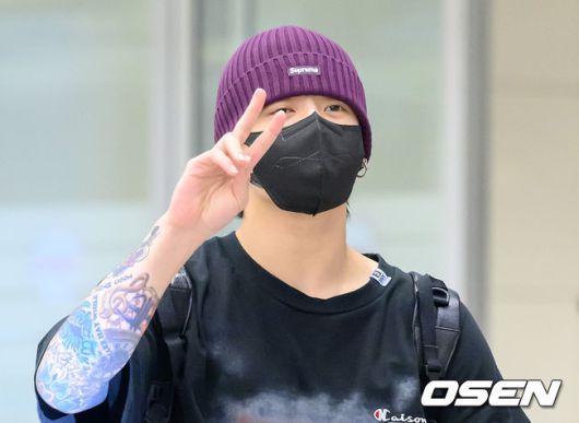 [OSEN=인천공항, 이대선 기자] 그룹 방탄소년단(BTS) 정국이 25일 오후 ‘글로벌 시티즌 페스티벌’ 일정을 마치고 인천국제공항 통해 입국했다. BTS 정국이 입국장을 나가며 팬과 취재진을 향해 인사를 하고 있다. 2023.09.25 /sunday@osen.co.kr