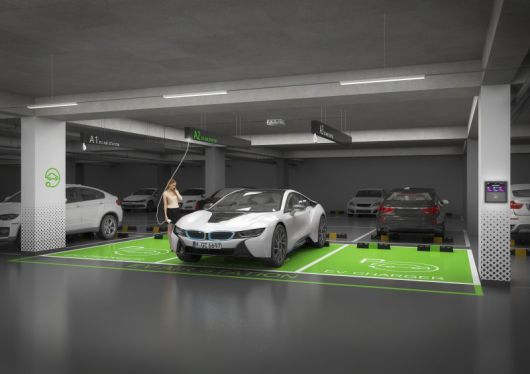 LG유플러스와 ㈜한화 건설부문이 공동 개발한 천장형 전기차 충전시스템 가상도. LG유플러스 제공 |