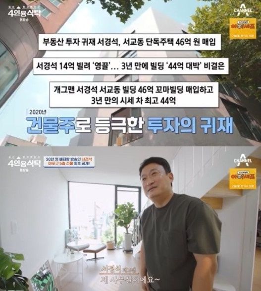 이날 서경석은 지난 2020년 매입한 마포구 서교동 건물을 공개했다. 자신의 사무실을 제외한 나머지 층은 모두 임대가 완료된 상태라고.