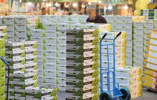 이날 공판장에서 거래된 샤인 머스캣은 한상자(2㎏)에 1만4천원 선에서 거래됐다.