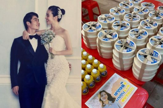 사진에는 연극 '바닷마을 다이어리'에 출연하는 한혜진을 응원하기 위해 도시락 배달에 나선 기성용의 모습이 담겼다. 기성용은 한혜진 얼굴뿐만 아니라 본인 얼굴이 그려진 스티커도 도시락에 부착해 눈길을 끌었다.