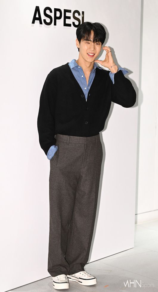 한 패션 브랜드 오픈 기념 행사가 26일 오후 서울 영등포구 더현대 서울에서 진행됐다. 가수 몬스타엑스 셔누가 포토타임을 갖고 있다. <저작권자 Copyright ⓒ MHN 무단전재 및 재배포 금지>
