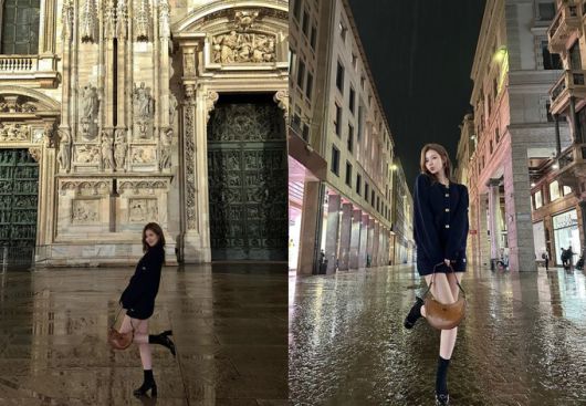 공개된 사진은 사나의 일상. 비 내리는 이탈리아 밀라노 대성당을 거니는 사나는 영화 속 한 장면처럼 낭만적인 순간을 즐기는 그의 모습이 시선을 모은다.