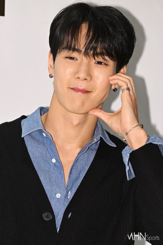 가수 몬스타엑스 셔누가 포토타임을 갖고 있다.