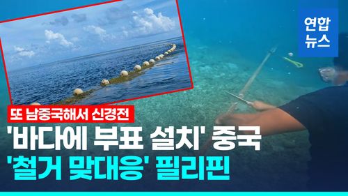 (서울=연합뉴스) 필리핀이 영유권 분쟁 지역인 남중국해의 스카버러 암초 주변에 중국이 설치한 부유 장애물을 전격 철거했습니다.