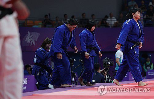 (항저우=연합뉴스) 김경윤 기자 = 한국 유도 대표팀이 2022 항저우 아시안게임 유도 마지막 메달 이벤트인 혼성단체전 준결승에서 '숙적' 일본에 완패해 금메달 획득에 실패했다.