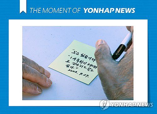 (서울=연합뉴스) 서대연 기자 = 제1회 이산가족의 날인 27일 오후 서울 종로구 광화문광장에서 열린 문화행사에서 한 이산가족이 메시지를 남기고 있다. 2023.9.27 [THE MOMENT OF YONHAPNEWS] dwise@yna.co.kr ▶제보는 카카오톡 okjebo▶연합뉴스 앱 지금 바로 다운받기~▶네이버 연합뉴스 채널 구독하기 <저작권자(c)연합뉴스. 무단전재-재배포금지.>