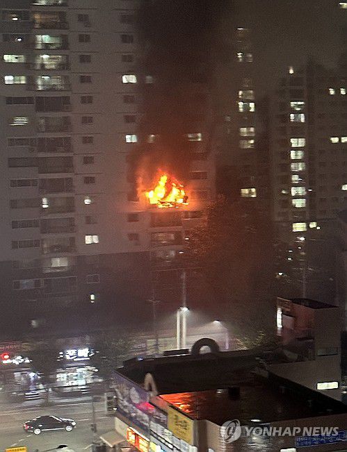 (광주=연합뉴스) 27일 오후 7시 45분께 광주 북구 운암동 한 아파트에서 불이 났다. 사진은 불길이 치솟는 모습. 2023.9.27 [독자 제공. 재판매 및 DB 금지] iny@yna.co.kr ▶제보는 카카오톡 okjebo▶연합뉴스 앱 지금 바로 다운받기~▶네이버 연합뉴스 채널 구독하기 <저작권자(c)연합뉴스. 무단전재-재배포금지.>