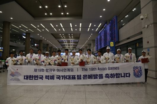 17년 만에 아시안게임 은메달을 목에 건 한국 럭비 대표팀이 17일에 한국에 들어왔다.