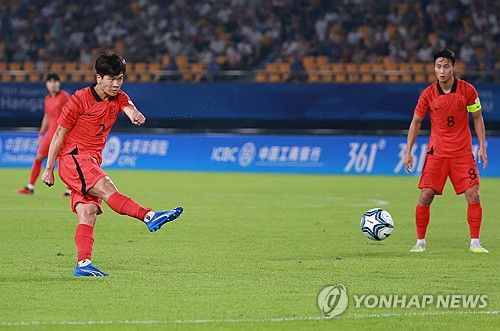 (엑스포츠뉴스 중국 진화, 나승우 기자) 아시안게임 3연패를 노리는 황선홍호가 16강 키르기스스탄을 상대로 막강 화력을 뽐내며 5-1 대승을 거뒀다. 8강에서 개최국 중국과 한판 승부를 벌인다.