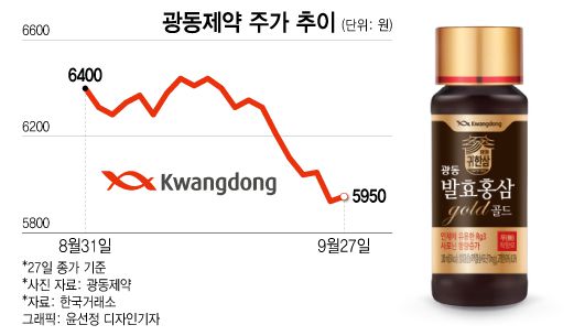 추석 대목을 앞두고 영업정지 처분을 받은 광동제약이 주가에도 직격탄을 맞았다. 다수 제품의 온오프라인 판매가 막히면서, 안 그래도 부진하던 주가에 하방 압력이 더해졌다. 증권가는 암울한 분위기를 바꿀 반전 카드가 필요하다고 말한다.