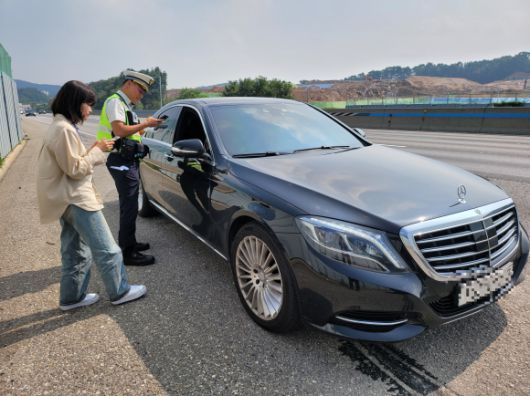 특히 이번 순찰에는 헬기(참수리·벨) 2대가 동원됐는데, 오전 11시 57분쯤 참수리호가 용인시 영동고속도로(강릉방향) 용인휴게소~양지터널 구간에서 버스전용차로를 달리던 검은색 벤츠차량 1대를 포착했다. 즉각 암행 순찰차량에 무전기를 통해 알렸고, 암행 차량이 갓길로 유도한 뒤 단속했다.
