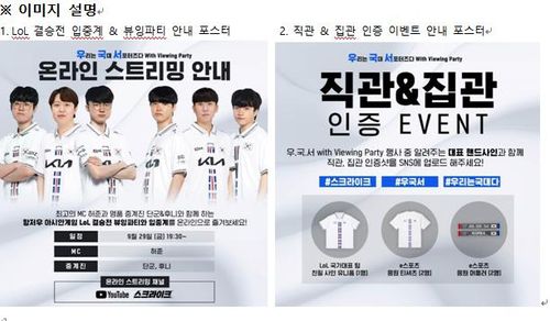 SK텔레콤이 마련한 응원 이벤트는 '우리는 국대 서포터스다'라는 타이틀을 걸고 LoL 팬들이 많이 찾는 서울 마포구 T1 베이스캠프에서 뷰잉 파티를 곁들인 라이브 입중계 형태로 진행된다.