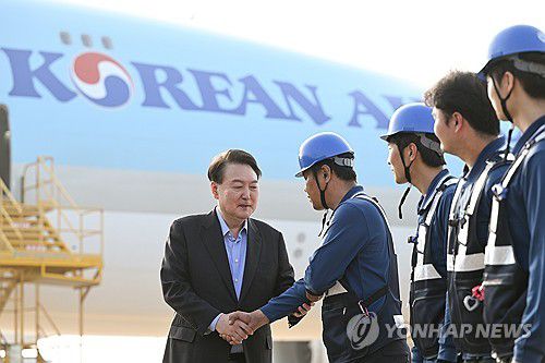 대한항공 화물기 탑승한 윤석열 대통령 |