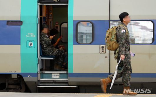 [서울=뉴시스] 최진석 기자 = 이번 추석 연휴엔 고물가로 귀성을 포기한 2030세대가 늘어난 것으로 파악됐다. 이들은 입을 모아 부모님 및 조카 용돈, 명절 선물 등에 지출할 것으로 예상되는 비용이 부담된다고 토로했다. 사진은 추석 연휴를 하루 앞둔 지난 27일 오전 서울역에서 군장병들 KTX열차에 탑승하는 모습. 2023.09.27. myjs@newsis.com |